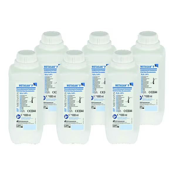 Caractéristique : produit pour la décontamination permanente de l‘eau et des conduits d‘eau. Solution prête à l‘emploi à 1,41 % de peroxyde d‘hydrogène. Compatible avec le matériel des fauteuils DENTSPLY SIRONA. Large spectre d'action. Agent prévenant la colonisation de biofilm. Action longue durée. Conforme à la norme CE 0044.