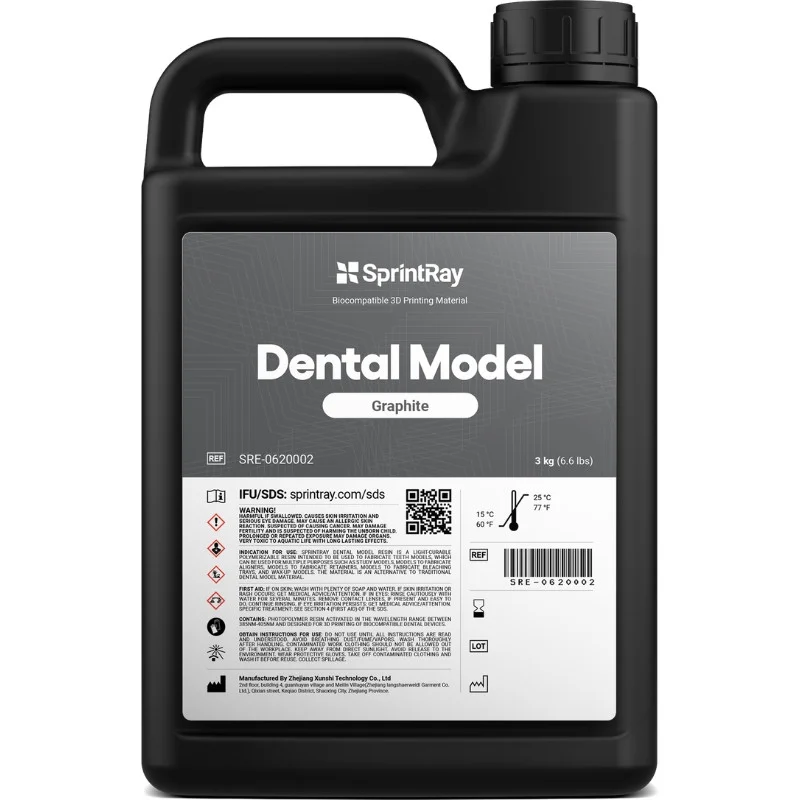 La résine SprintRay Dental Model Graphite (3 L) est conçue pour les laboratoires, orthodontistes et cabinets à haut volume d’impression.